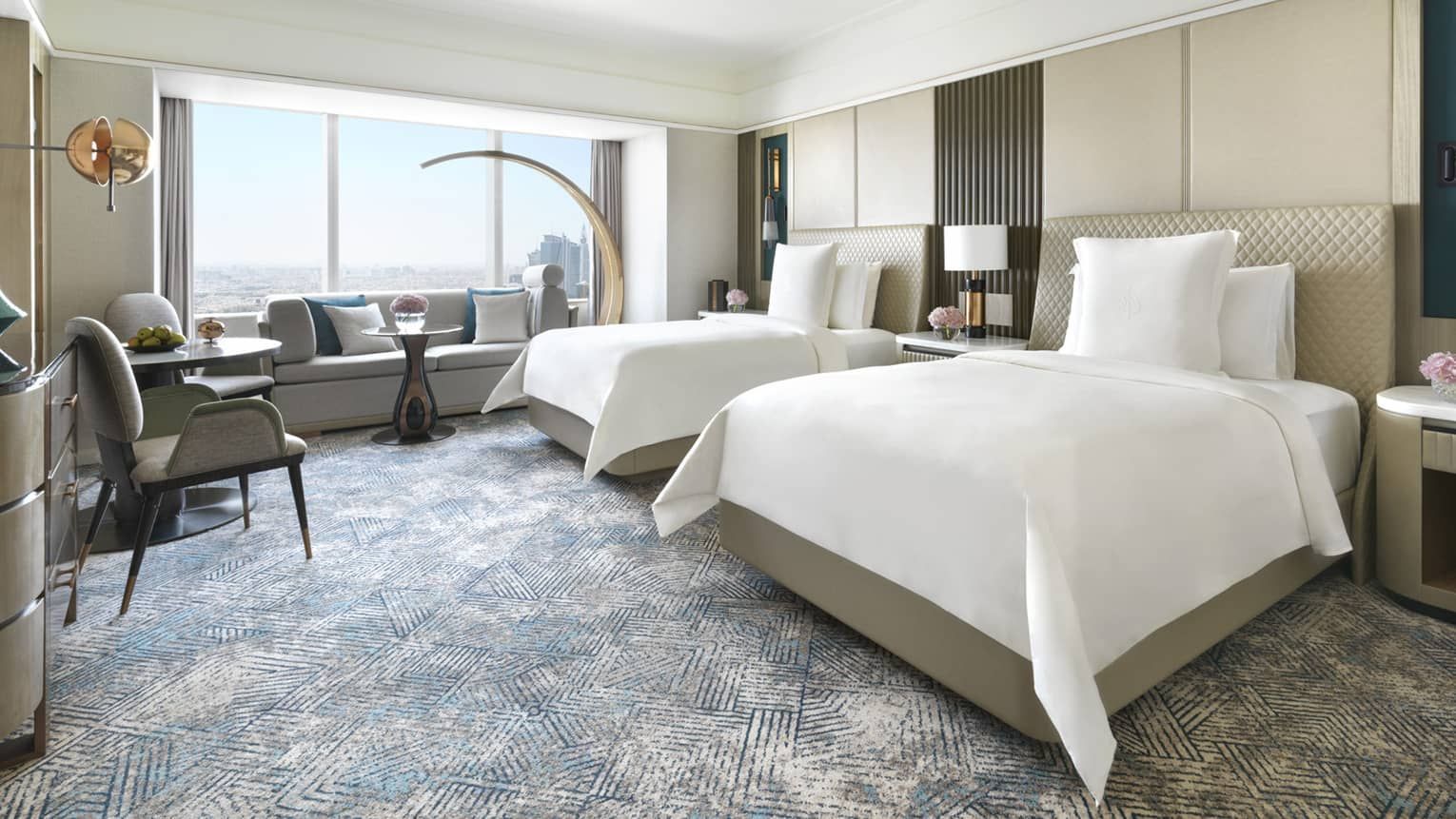 Rooms & Suites 276 spacious rooms and suites spread across the 30th to 50th floors, each featuring marble bathrooms, floor-to-ceiling windows with panoramic Riyadh views, and a dedicated work area tailored for both business and leisure stays.